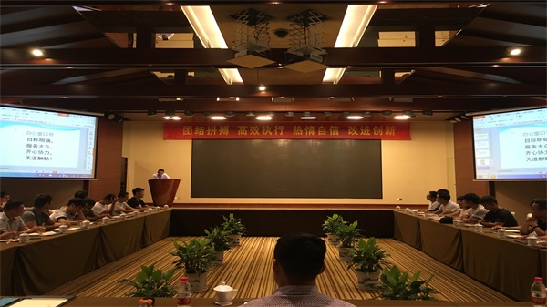 會議在周軍副總經理的主持下順利召開,周總以一滴水的故事教育大家只有每位員工真正融入公司這個大家庭,才能發揮個人最大的才能,只有團結高效才能創造成功!